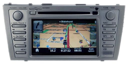 Штатная автомагнитола для Toyota. DVD-проигрыватель, воспроизведение MP3, MPEG4, навигатор с GPS, сенсорный дисплей 7", ТВ-тюнер, макс. мощность 4 x 45 Вт.
