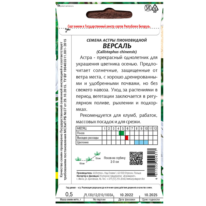 Астра Версаль пионовидная, 0,5 г, шт
